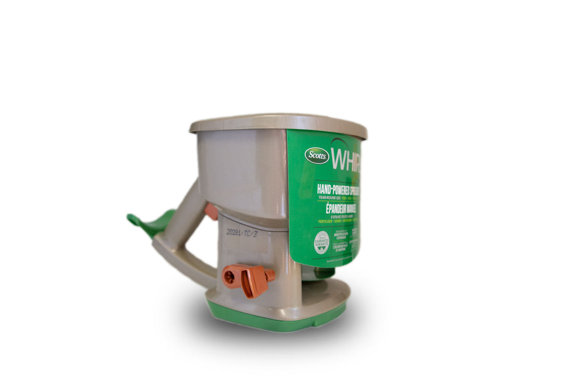 Répand uniformément les engrais pour pelouse ou les graines d'herbe sans manivelle manuelle Le cadran...