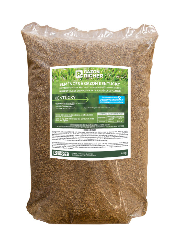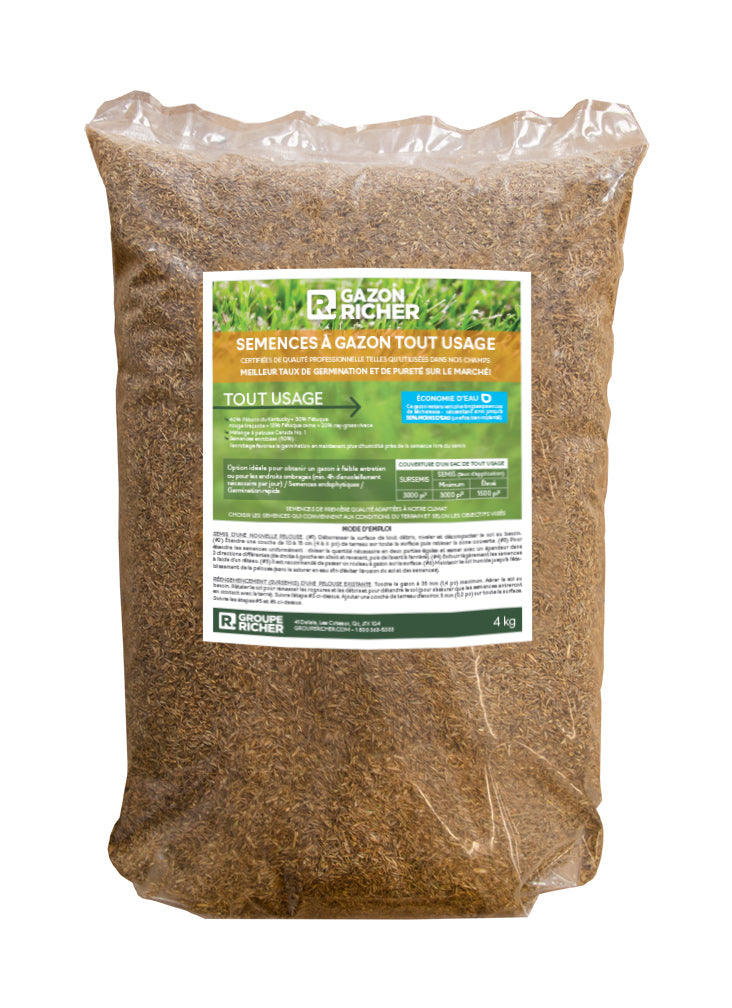 Mélange tout usage pour endroit ensoleillés et ombragés. Requiert peu d'entretien. Recette : 66% Fétuque...