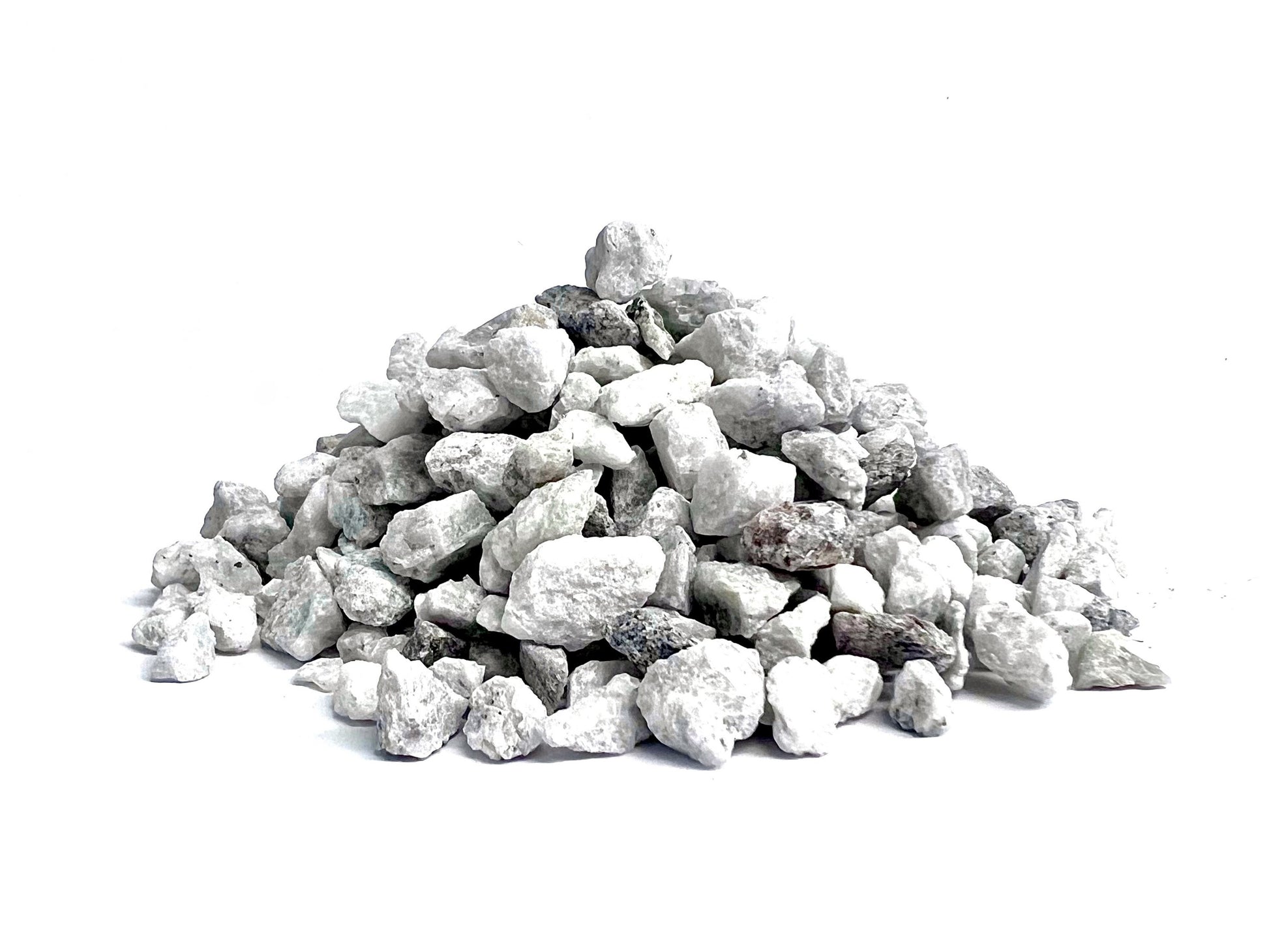 This white stone is often used for landscaping projects such as flowerbeds, house surrounds, pool surrounds, and as a base for shrubs. These white stones can provide drainage while also offering a rich, natural look thanks to their small, sparkling inclusions.